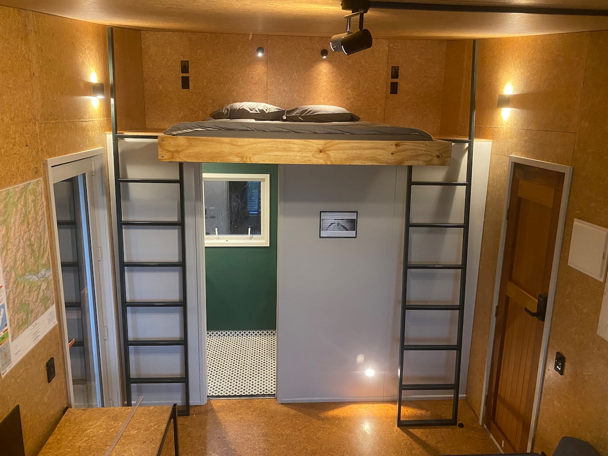 Peaceful studio inspired on the backcountry huts. With a unique feature of a high bunk bed, if you are scared of height or a bit clumsy take the basecamp sofa bed on the ground floor while the more daring ones can enjoy the height and views up there. Peaceful and private, you are guaranteed a joyful experience. Bus stop right at our door, 5 min. walk supermarket, 7 min. bus to town. Next to the port hills with beautifull walks. Kitchnete under construction but can be used. Queen double + sofabed