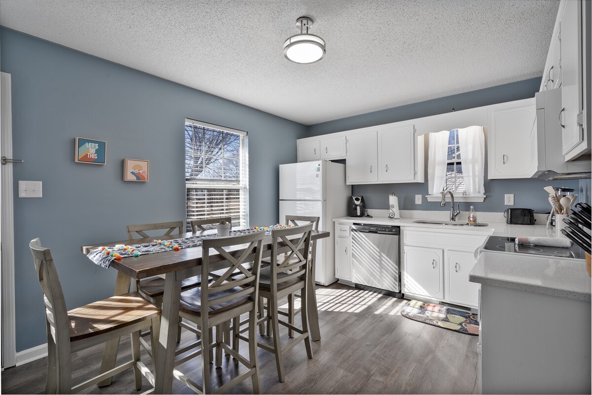 Čudovito prenovljeno prenočišče s 3 spalnicami, le 3 km od Fort Campbella in igralnice Oak Grove. Uživajte v sodobni kuhinji, udobni dnevni sobi s pametno televizijo, hitrem Wi-Fi-ju in velikem ograjenem dvorišču z ognjiščem. Spalnice vključujejo zakonsko posteljo, zakonsko posteljo in dnevno posteljo z izvlečnim ležiščem; dnevna soba ima raztegljiv kavč. Idealno za družine, vojaška potovanja ali poslovna bivanja. ✔ 3 udobne spalnice ✔ Popolnoma opremljena kuhinja, ✔ Veliko dvorišče z ognjiščem ✔ Hitri Wi-Fi ✔ Pametna televizija ✔ Pralni in sušilni stroj ✔ Parkiranje na dovozu