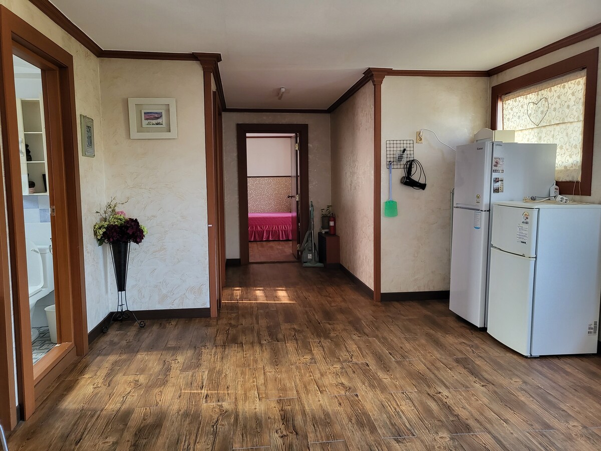 조용한 주택가에 자리하고 바로 앞은 공원이 위치해 기분좋게 휴식하기 좋습니다. 소규모 파티하기도 적합하며, 색다른 분위기에서 즐길 수 있습니다. 빔이 있으니 적극 활용해보세요. 로맨틱한 저녁이 될거에요. 공간은 완벽하게 분리되어 출입도 따로 하게 되어있으면서 저희 가족공간과도 밀접하니 필요한게 있으시면 도와드리기 좋습니다. 다만 생활 소음이 있는 부분은 꼭 고려하시고 예약해주세요! 민감하신 분들은 다른 독채 숙소를 알아봐주시기 바랍니다. 설명을 다 써놓고 메세지로 안내까지 드리고 있습니다 ㅠㅠ 해수욕장까지 차로 15-20분 거리입니다. 주차는 바로앞 길가나 주택에 마련된 주차장 중 편하신 곳에 하시면 됩니다. 물론 도보 5분이내에 공영주차장도 있어요! *방문하시는 모든 게스트분께 해수욕장에 위치한 “모아가” 10% 할인쿠폰 제공됩니다.