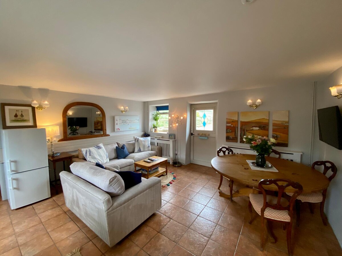 Brynmôr Bach is a light and airy, recently refurbished, semi-basement garden flat. Open plan design kitchen/dining/living area. Double bedroom & bunk bedroom. Lovely garden with mediterranean style courtyards, summerhouse and rural views. Travel cot & high chair available. Off road parking. 5-10 mins walk to pubs, restaurants, shops and beaches. Why not book 1 Brynmôr, the three bedroomed house above which sleeps 9 & hot tub, to extend accommodation for larger groups at the same location?