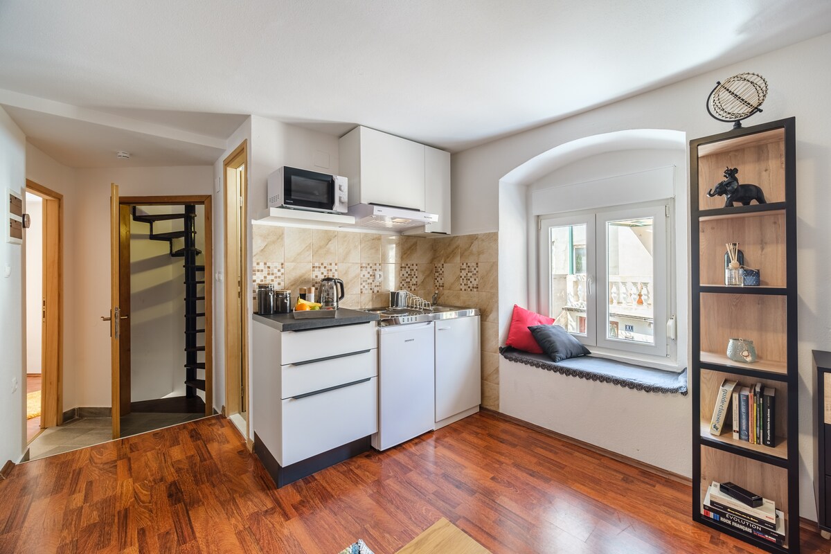 + stanovanja: * Popolnoma prenovljeno v letu 2022/23 * 1 minuta hoje od morja * 40 m² velika strešna terasa s 360-stopinjsko panoramo * Pogled na Jadransko morje in otoke * Pogled na vrh Veli vrj * Mirno okolje * Zgodovinska vas * Hiša, zgrajena pred 700 leti * Vse trgovine v hoji * Center za prosti čas v bližini * Samo 13 minut vožnje z avtomobilom/avtobusom od mednarodnega letališča Split * 2 min hoje od avtobusne postaje 37, ki služi Splitu, Trogiru in letališču