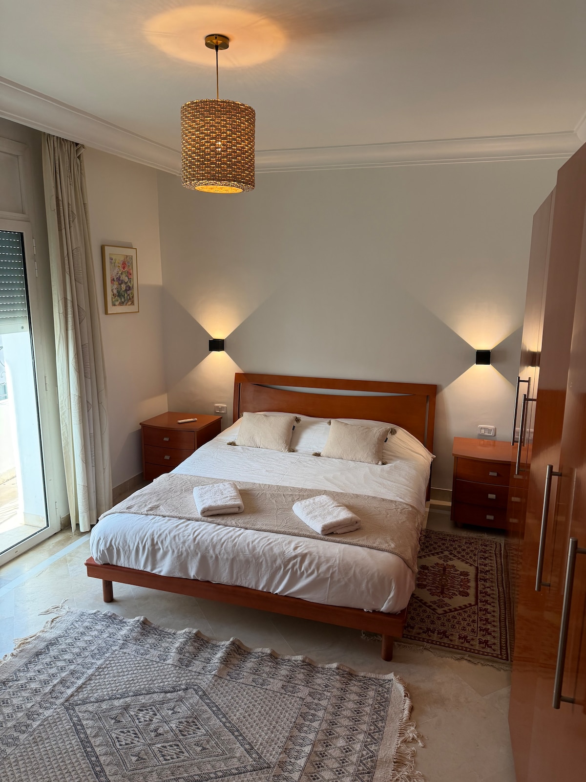 Dobrodošli doma. Svetlo stanovanje v 3. nadstropju s čudovitim razgledom, okrašeno z ročno izdelanimi tunizijskimi kosi in boemsko elegantnimi detajli. Uživali boste v sončni dnevni sobi, dveh udobnih spalnicah, prijazni kuhinji, čudoviti prenovljeni kopalnici in majhnem balkonu, kjer lahko uživate v sredozemskem vzdušju. Vsaka podrobnost je bila skrbno izbrana, da bi ustvarila pristno, pomirjujoče in toplo vzdušje, idealno za počitek, delo ali raziskovanje območja.