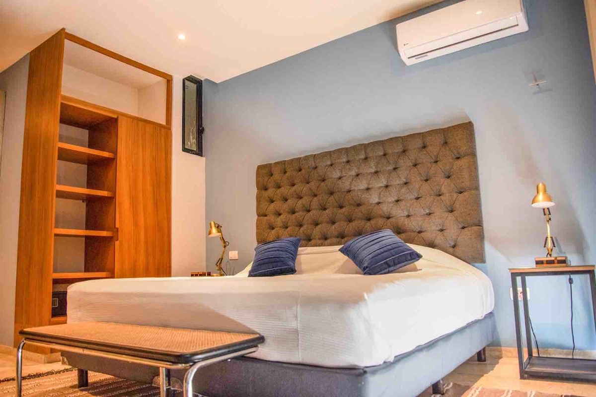 King bed with soft and firm pillows. We have a drinking water filter. water pressurizer. washer dryer. Covered parking for 2 vehicles. Guardhouse. AC in rooms and living room. Rooftop, terrace and pool. Fully equipped kitchen. Internet 100mb and cable TV. Desk and work chair. 5 min by car from the ring road. Tv in rooms and in the living room. Write to us asking for the best local recommendations. If you have no doubt feel free to book now.