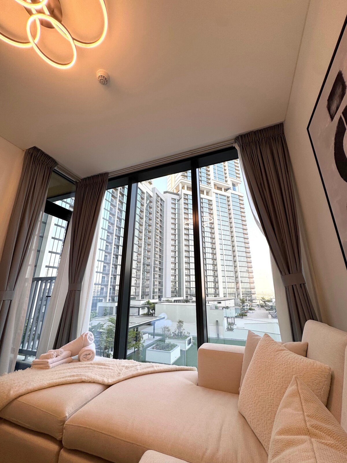 Bivajte v edinstvenem enosobnem stanovanju v razkošnem objektu Palace Residences ob obali v pristanišču Dubai Creek. To prenočišče s površino 66 m2 je popolnoma opremljeno z vsem, kar potrebujete. Ima svetel dnevni prostor in zasebni balkon s čudovitim razgledom. Gostje imajo na voljo vrhunsko opremo, vključno z vrhunskim bazenom, sodobno telovadnico in non stop varnostjo. Popolnoma povezan, le 15 minut od središča Dubaja in letališča, je idealno izhodišče za vaše bivanje v Dubaju.