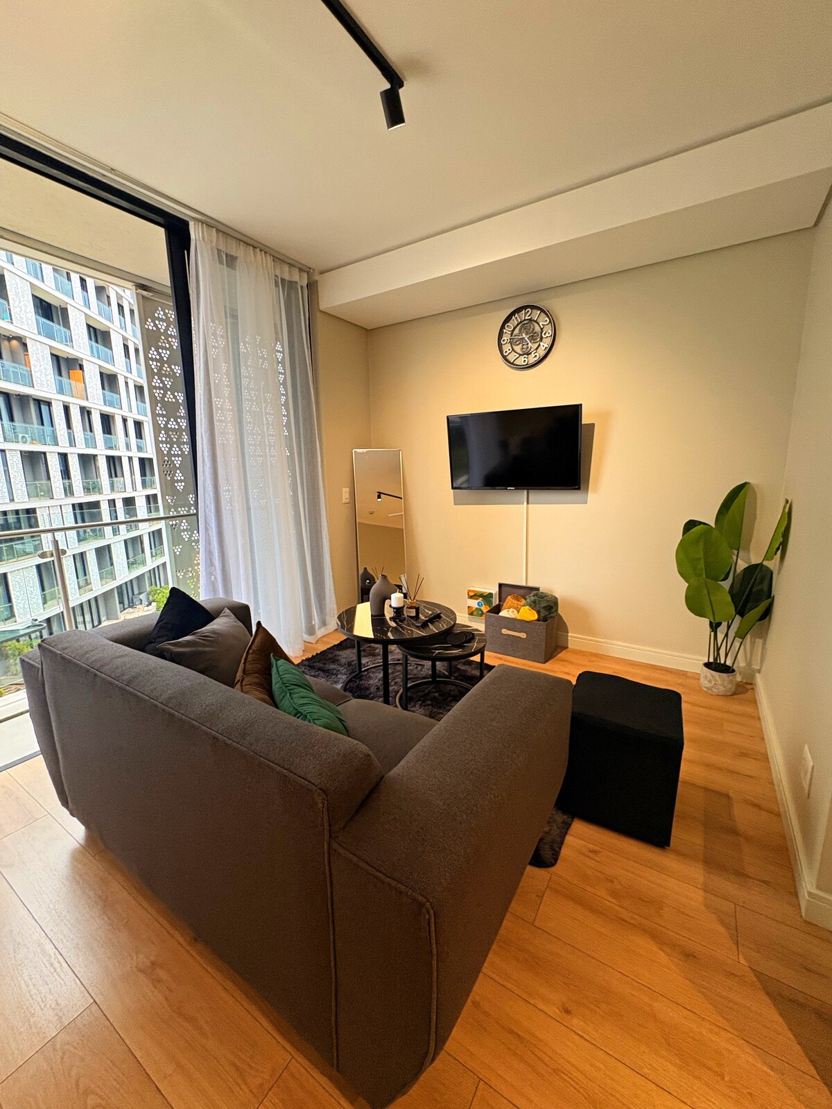 Doživite sodobno eleganco v tem elegantnem stanovanju v hotelu The Ellipse Cassini, glavnem naslovu slapa Midrand. Okna od tal do stropa prikazujejo osupljiv razgled na mesto, medtem ko prostor preplavljajo z naravno svetlobo. Uživajte v vrhunskih zaključkih in popolnoma opremljeni gurmanski kuhinji. Sprostite se na zasebnem balkonu ali pa se prepustite vrhunski opremi: neskončni bazen, fitnes center in urejeni vrtovi. Popolnoma nameščen v bližini nakupovalnega središča Mall of Africa z varnim parkiranjem in 24-urnim varovanjem.