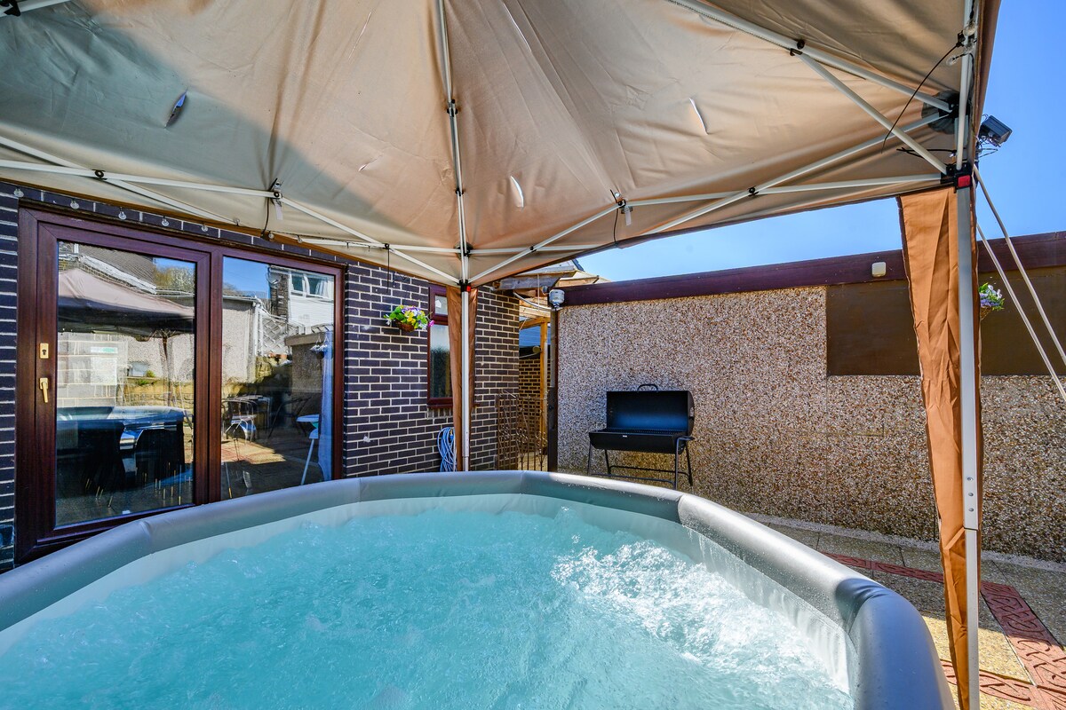 Dobrodošli v našem čudovito zasnovanem, popolnoma opremljenem prenočišču, ki je kot nalašč za sproščujoč oddih ali poslovno potovanje. - Prostorni dnevni prostori s pametno televizijo in notranjim kaminom – 4 udobne spalnice z vrhunsko posteljnino in pametnimi televizorji - Dobro opremljena kuhinja za domače jedi - Osupljivo zasebno dvorišče z masažno kadjo in žarom - brezplačne pijače dobrodošlice, - Idealno za družine, prijatelje in poslovne potnike Rezervirajte zdaj, ker hitro dobimo rezervacije.