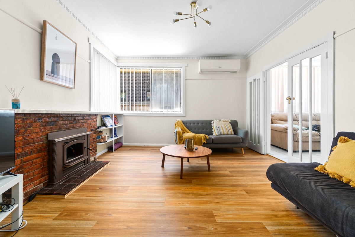 Make some memories at this unique and family-friendly place. Cozy up with the indoor wood fire place, enjoy the large backyard, local shops, cafes and supermarket near by. 5 minute walk to a bus stop and parks. Bedroom one- king bed (sleeps 2) Bedroom two- single & trundle (sleeps 2) Bedroom three- single bed (sleeps 1) Bedroom four- external room, queen bed (sleeps 2)