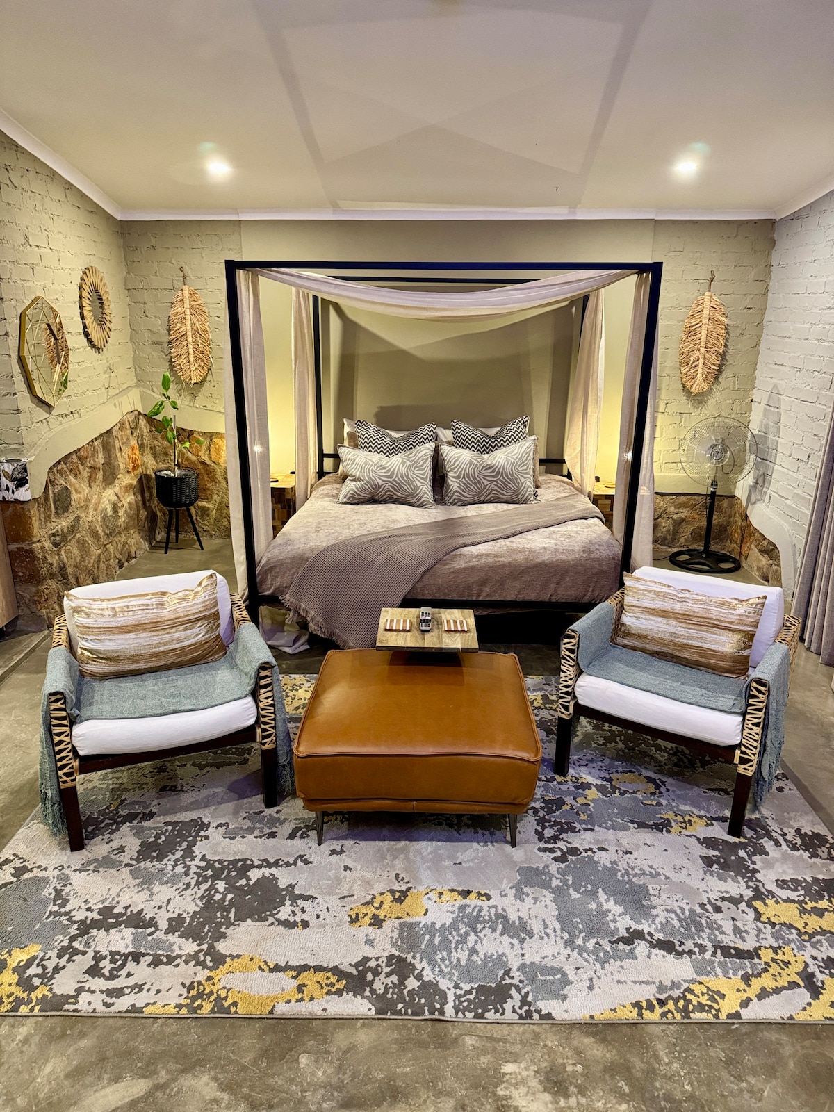 Dobrodošli v koči Kiara — sodobnem, minimalističnem prostoru za pare, ki iščejo počitek in ponovno povezavo v naravi. To mirno zatočišče, ki se nahaja v kraju Bentlys v Dinokengu, le 5 minut od rezervata Dinokeng, vas med free-roaming impalas, zebras in drugimi prijaznimi prostoživečimi živalmi. Koča Kiara, ki je kot nalašč za pobeg od hrupa mesta, vas vabi, da upočasnite, vdihnete svež grm in uživate v lepoti afriške pokrajine z vaše zasebne terase.