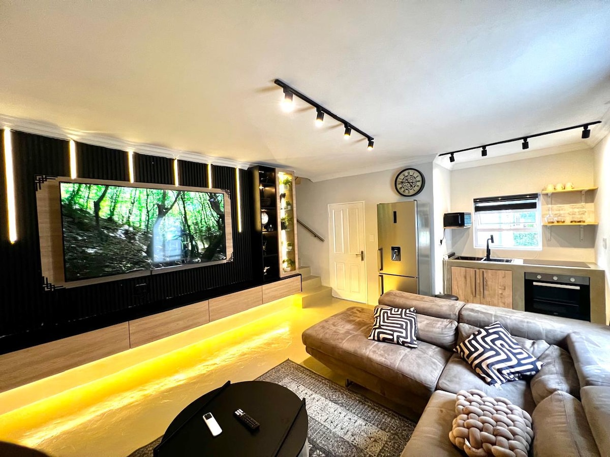 Sprostite se v tem mirnem in elegantnem prostoru po delovni konferenci ali dnevu v Sandtonu. Pripravite obrok s tremi hodi, pripravite se za dobro branje ali pa pretočno predvajajte najnovejše filme z dobrim kozarcem vina. Hiška na deželi nudi namenski delovni prostor, zakonsko posteljo, pralni stroj in zunanji prostor. Dodatni bonusi so bližina zabaviščnih prostorov, kot so Monte Casino, Sandton ali Rosebank, kjer lahko uživate v vsem, od filmov do gledališča in večerje. Dokaz za nakladanje!