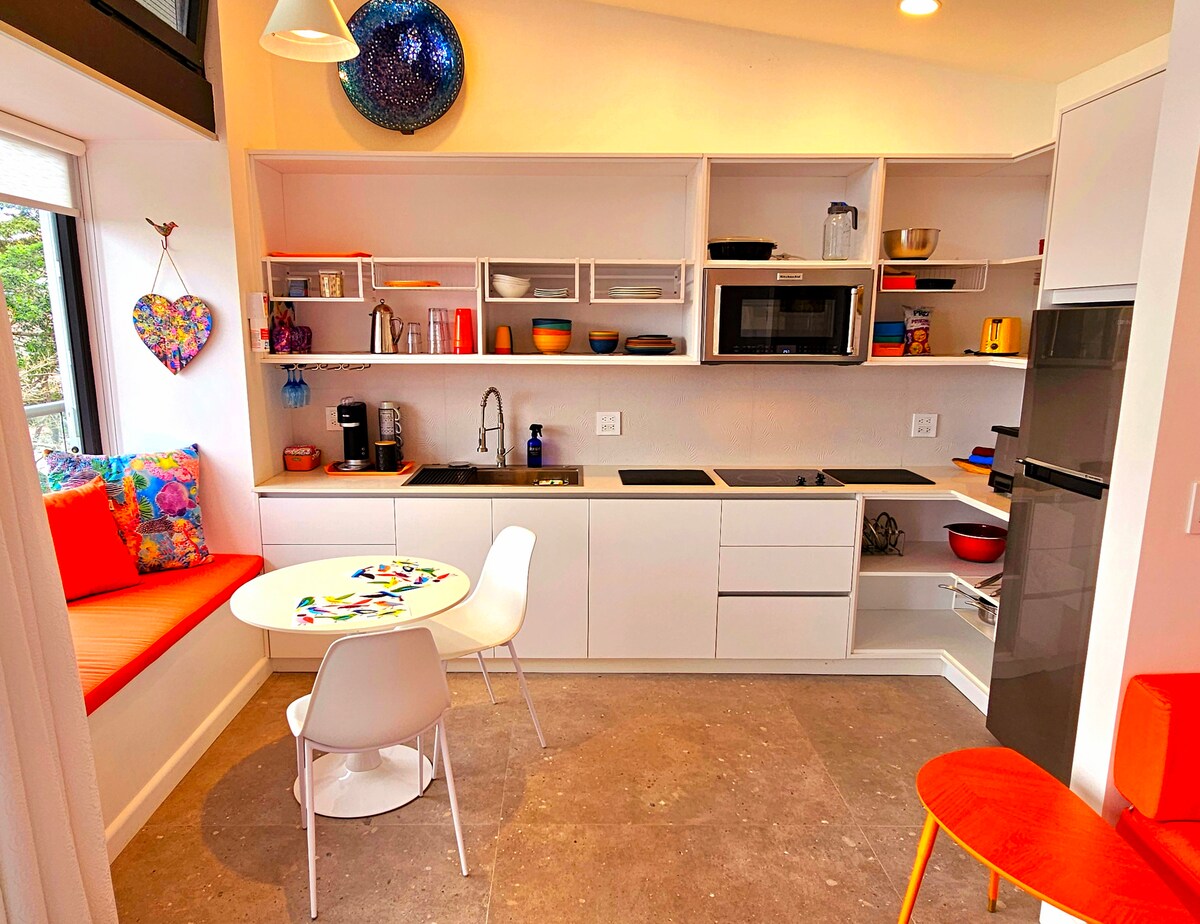 This vibrant, modern 600 SF loft-style casita owns some of the most spectacular views in Costa Rica from its private terrace. The meticulously designed space features countless creature comforts and was curated with attention to detail top of mind. Everything is brand new and high end. Super fast WIFI and a standing desk provides working travelers an ideal set up. The full kitchen is precisely stocked with everything you need to eat well on your stay. Even the shower has sweeping views.