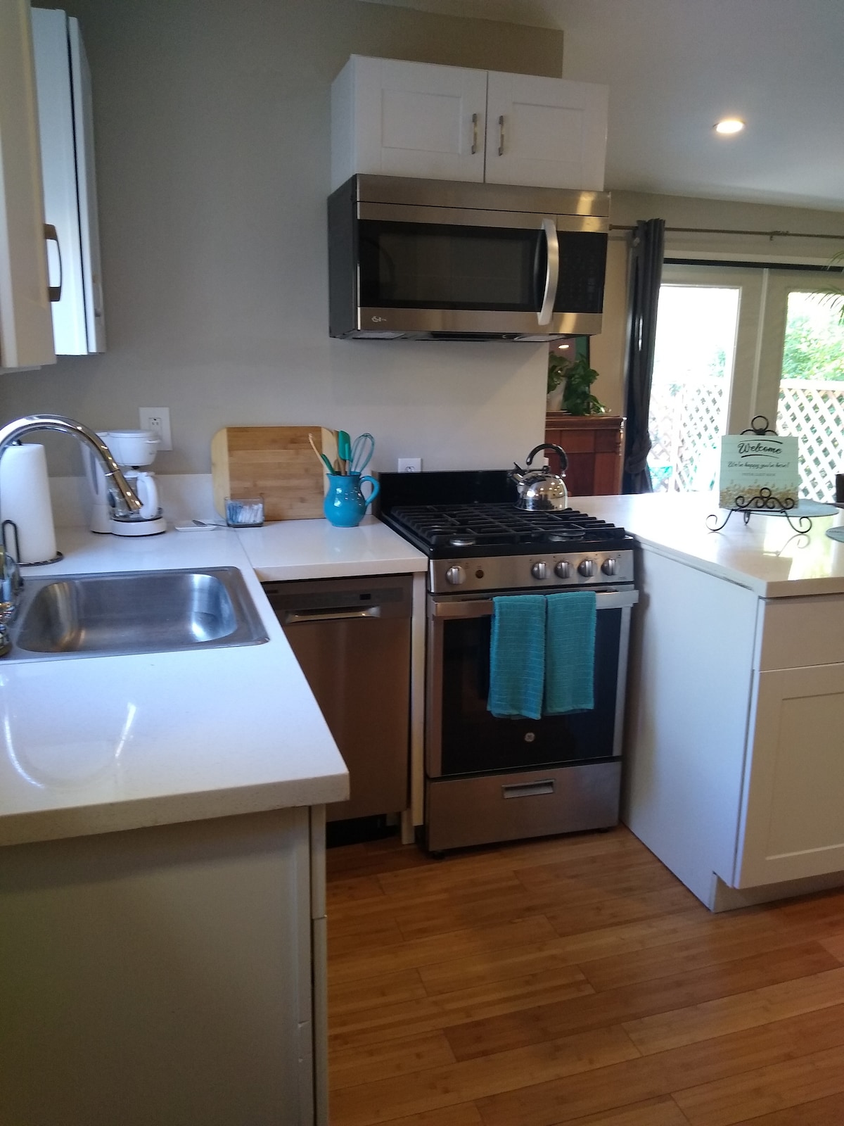 Sprostite se v tem edinstvenem, mirnem in udobnem mini prenočišču na našem dvorišču. Obdan z lepim vrtom s široko paleto sukulentov in sproščujočim bazenom. S prostorom za uživanje v branju ali poslušanju glasbe. Opremljen je z mikrovalovno pečico, aparatom za kavo Keurig, mini hladilnikom, opekačem kruha, mešalnikom, pralnim/sušilnim strojem in namiznim priborom. Mini dom ima klimatsko napravo in ogrevalni sistem za udobje ter pametno televizijo. Zabave niso dovoljene.(PROSTOR, OPREMLJEN SAMO ZA 2-3 OSEBE *ne več kot 3 osebe *)