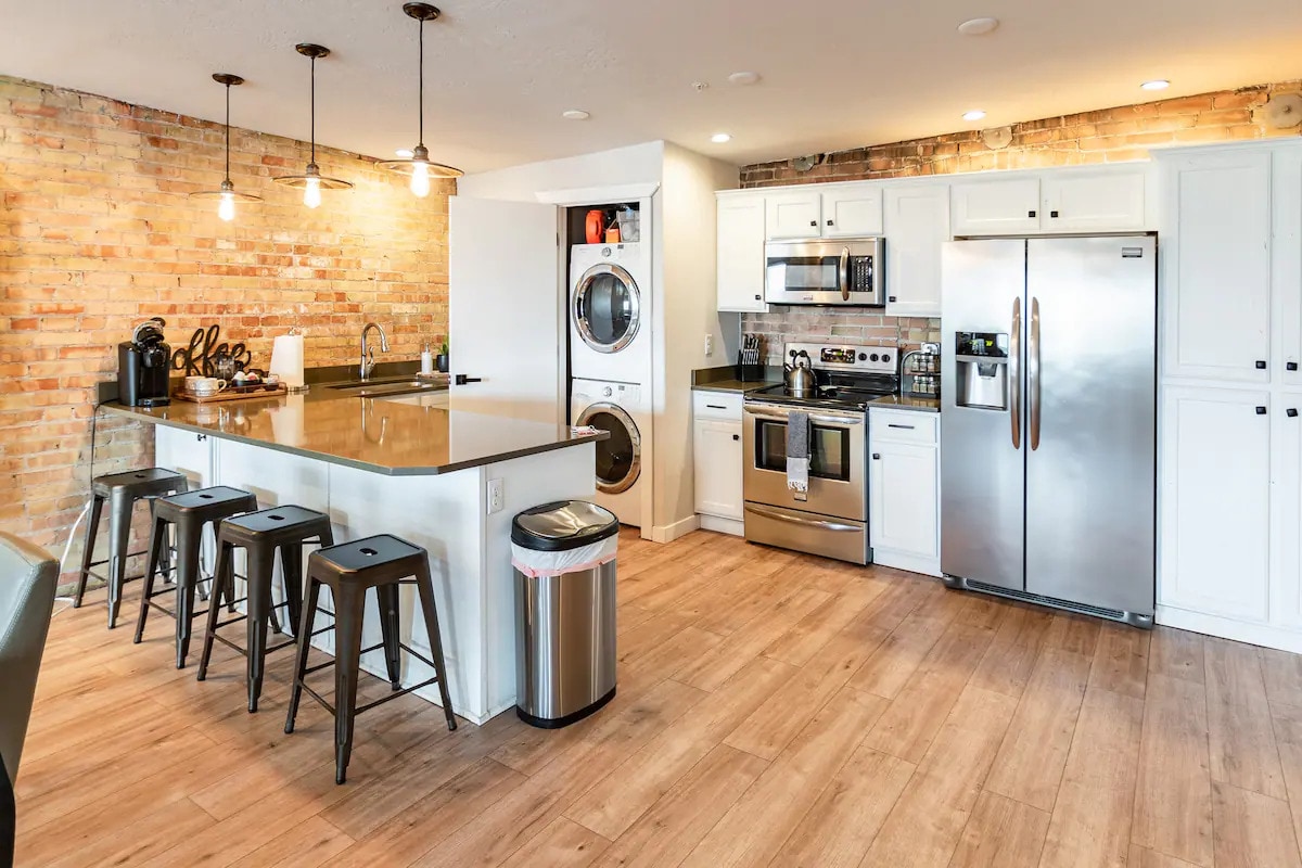 Stay in this stunning industrial style 100-year-old converted warehouse with a jetted tub! Perfectly located in the heart of downtown Salt Lake City. Walking distance to the Gateway Mall (4 minute walk), City Creek Shopping Mall, Delta Center (5 minute walk), Salt Palace Convention Center (7 minute walk!), grocery stores, bakeries and the most popular bars and restaurants. It is a 10 minute drive from the airport and a 30 minute drive to the ski resorts! Perfect for any getaway!