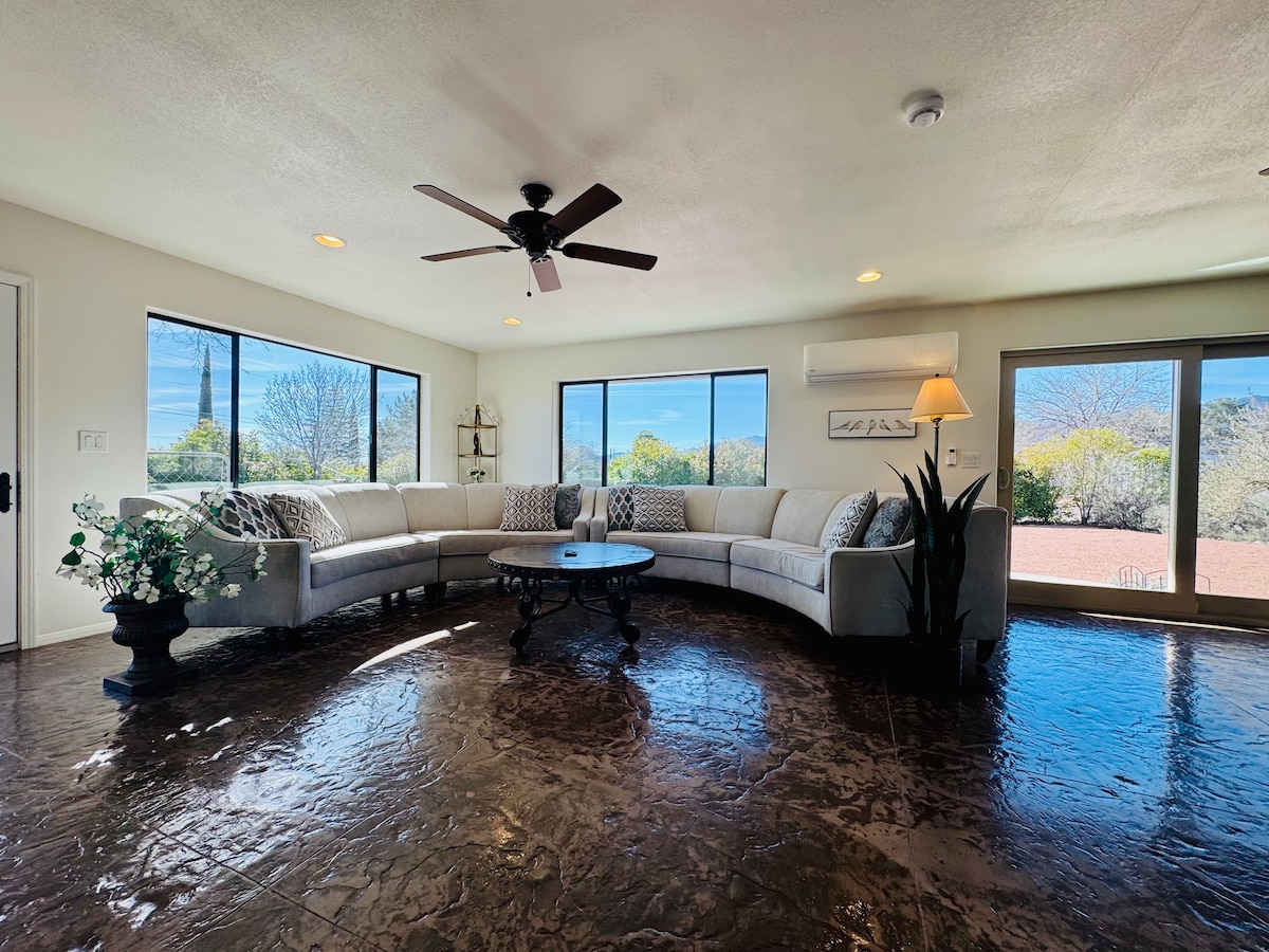 *Nova zakonska postelja, 22. 9. 2025* Nahaja se v središču mesta, le nekaj minut od Sedone, Jeromea in več vinarn.Do degustacijske sobe, parka v soseski in pohodniških poti s pogledom na Sedono se lahko sprehodite peš. Oglejte si Mingus Mtn z dvorišča. Uživajte v sončnem vzhodu s kolibriji in ponoči zlahka opazujte zvezde, saj smo del skupnosti temnega neba! Mirno in spokojno, kot nalašč za dekliške izlete, družinske počitnice/počitnice, majhne umike, wellness umike ali prenočišča za poslovneže. Parkiranje avtodoma. 2,5 ure od Velikega kanjona