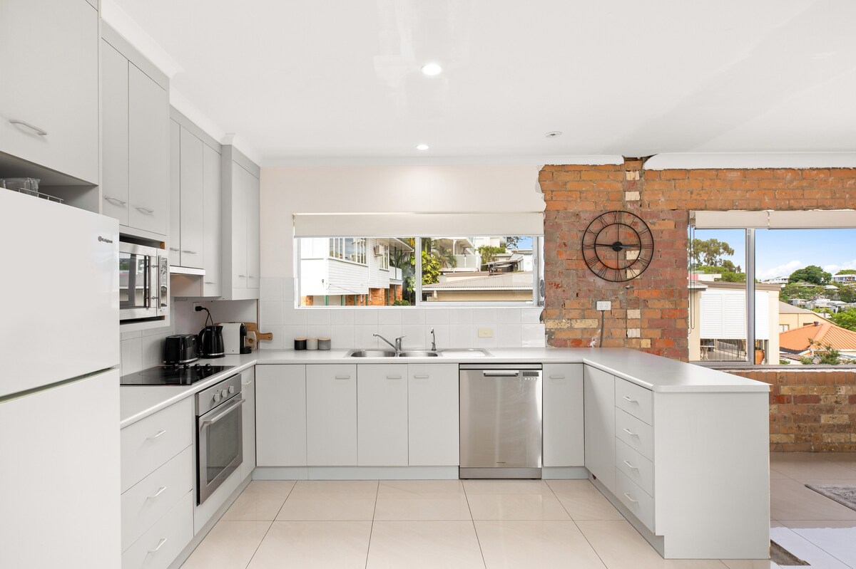 Pred kratkim zgrajeno prenočišče z 2-sobnim apartmajem za goste v pritličju. Apartma za goste ima zasebni dostop do kuhinjske niše/ jedilnice in salona ter dve spalnici z lastno kopalnico. Nahaja se v mirni ulici, le nekaj minut hoje od stadiona Suncorp, ulice Caxton St in lagodnega sprehoda po mestu in Southbanku. V dnevni sobi lahko na zahtevo, pred prihodom (40 $/noč), lahko v dnevni sobi nastavite dodatno (zakonska postelja (zakonska postelja)). Gostitelj je v zgornji enoti in z veseljem vam pomagamo pri morebitnih težavah ali zahtevah.