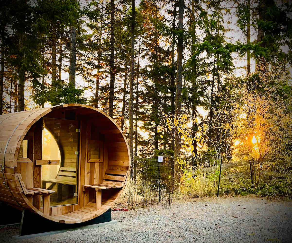 Dobrodošli v Peaceful Pines! Miren gorski oddih le 30 minut od prelaza Snoqualmie in 90 minut od Seattla. Naše prenočišče boste našli skrito na 5 hektarjih, obkroženo z zimzeleni in odprtim nebom. Popolna priložnost, da pobegnete od vsega in ste blizu obilja pustolovščin. Odpravite se v Roslyn na kosilo, ki je oddaljeno samo 15 minut. Vrnite se po enem dnevu raziskovanja, da se sprostite v naši masažni kadi in vdihnete svež gorski zrak.