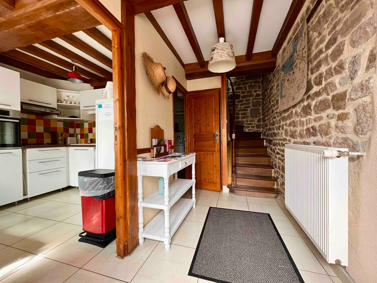 ** Za vsako REZERVACIJO vas prosimo, da obiščete naš novi vnos: airbnb.fr/h/babethandserge Ta vnos je objavljen na spletu zaradi zgodovine mnenj Očarljiva hiša, popolnoma prenovljena, ponuja udobje in zasebnost. Zavarujte garažo za kolesa. Na 1 ha narave s potokom, bambusom, stoletnim hrastom in sončno teraso – idealen kraj za družine, prijatelje ali delo na daljavo (optika). V bližini: golf, plezanje, gorsko kolesarjenje, kajakaštvo, plezanje po drevesih, zipline.