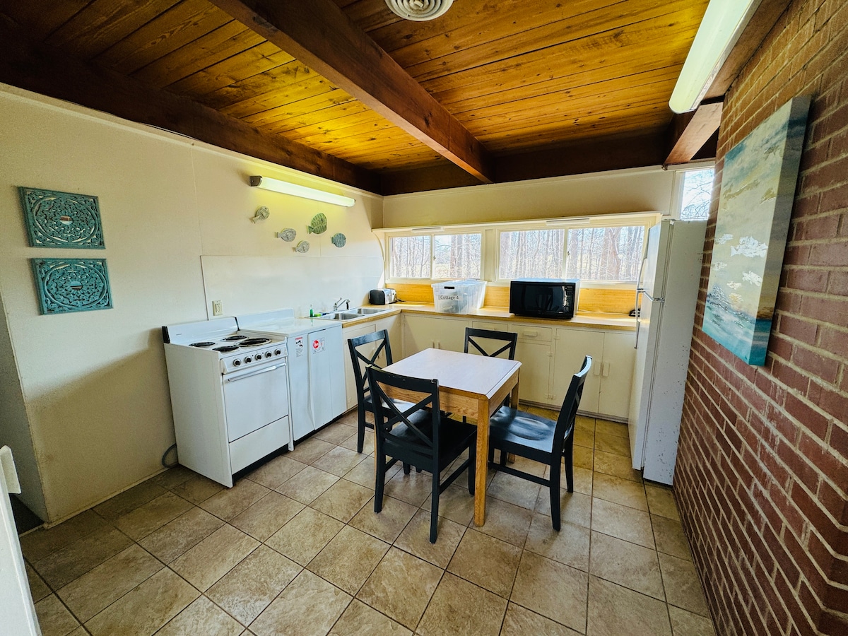 Ta sladka, eklektična mini-hiška je pripravljena, da vas sprejme na mirnem oddihu. Uživajte v razkošnem razgledu s sprednje verande. Izkoristite miren čas, da dokončate roman ali pa se sprostite od stresa življenja. Sprehodite se po posesti, ribarite v ribniku ali pecite marshmallowe v ognjišču. Sprejemamo vaše lepo vzgojene hišne ljubljenčke. Ta lokacija je kot nalašč za tiste, ki želijo pobegniti, vendar želijo tudi udobje življenja, ki so oddaljeni le nekaj minut.