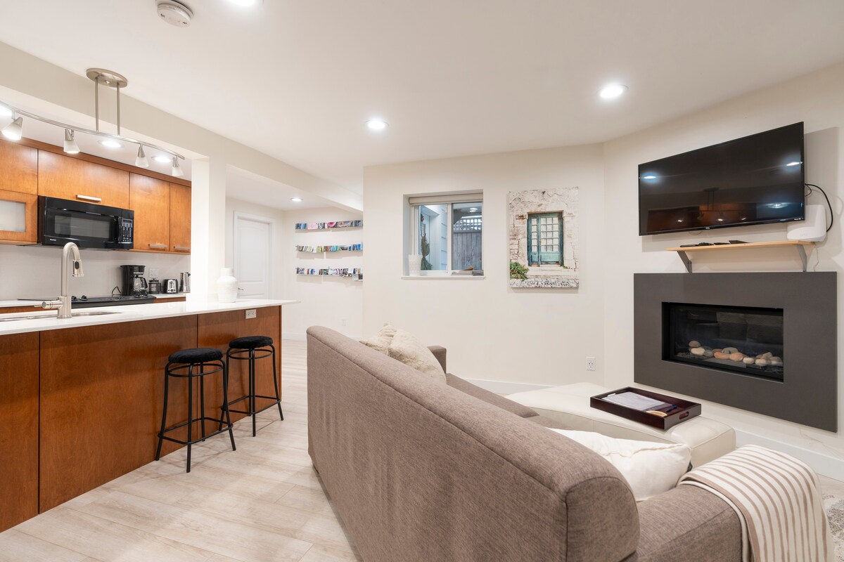 Ta svetla in posodobljena 1300 kvadratnih metrov velika garsonjera, ki se nahaja v varni in tihi soseski Grouse Woods, je popolna za goste, ki radi sprehajajo, kolesarijo, se odpravljajo na pohod in smučanje. Do smučarskega letovišča Grouse, visečega mostu Capilano, jezu Cleveland, javnega prevoza in lokalne trgovine z živili se lahko sprehodite peš. Ta sproščujoča suita je vzdrževana z najvišjim standardom čistoče in nege. Vse naprave so nove in delujejo v popolnem stanju.