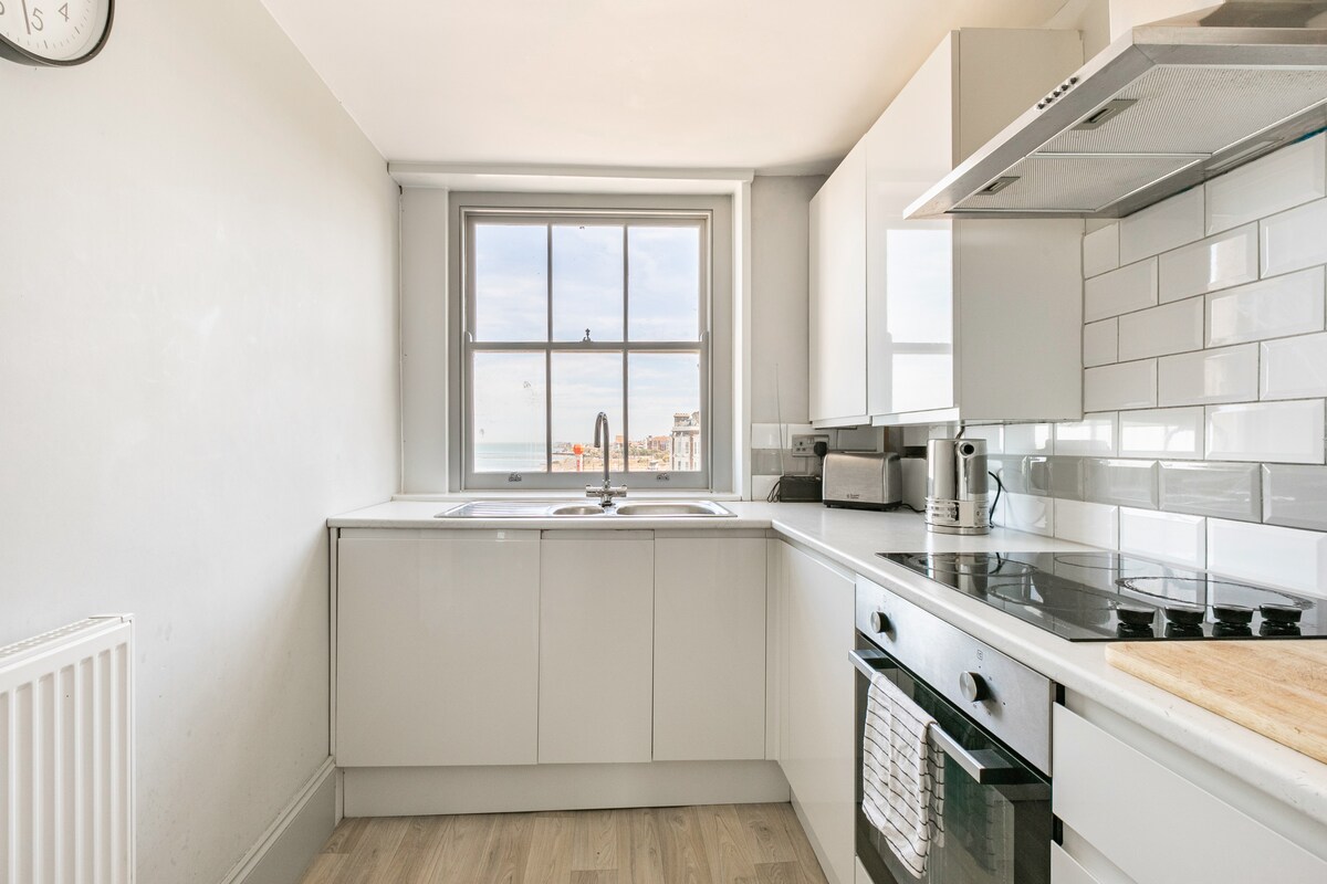 Izglasovan za najboljši razgled na morje v Margateu! Le nekaj korakov od peščenih plaž z modro zastavo, tako blizu, da lahko slišite valove. Čaroben razgled na morje iz obeh spalnic in dnevne sobe! Sveža sodobna luksuzna dekoracija, 2 dvoposteljni spalnici, super kraljevska postelja se prav tako razdeli na dve enojni postelji. Hiter WI-FI. Brezplačno parkiranje zunaj. V mirni, elegantni stavbi, v bližini fantastičnega bazena Walpole Tidal in kratek sprehod po promenadi do restavracij in trgovin v starem mestnem jedru Margate ter slavne galerije Turner.