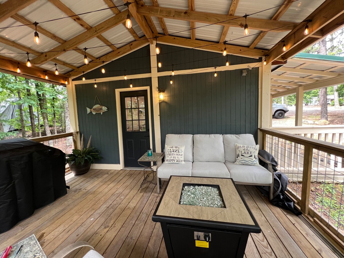 Udoben pogled na jezero, v celoti prenovljen s sodobno kuhinjo s popolnoma založenim kavnim barom in kopalnico. Za 5 oseb z 2 velikima posteljama in 1 spalnim kavčem. Uživajte v razgledu na vodo iz masažne kadi na zasebni pokriti verandi, žaru in ognjišču. Samo 3 minute do marine Choctaw, kjer je na voljo 150 KM pontonski čoln za leto 2023. Tiho in mirno okolje, kot nalašč za sproščujoč oddih. Pralni in sušilni stroj Odličen kavni bar je vključen! Odlično prenočišče in uživanje na jezeru, 5 minut od središča Clintona.