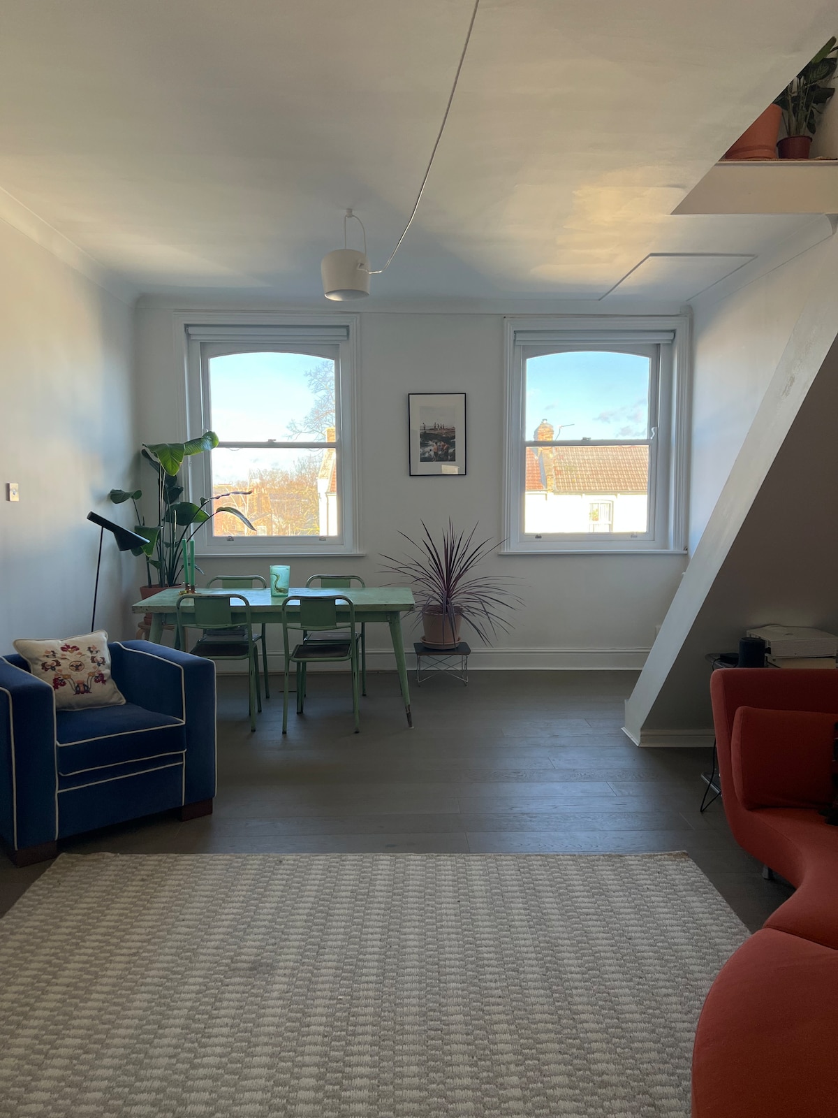 Nestled in the heart of Newington Green, this charming top-floor 1-bedroom flat offers tranquility and abundant natural light. Situated on a bustling street, you'll find a lot of cafes, trendy restaurants, and convenient stores. A delightful park is just a 10-minute stroll away. Located between the neighborhoods of Highbury, Dalston, and Stoke Newington, you'll have easy access to an array of cultural attractions, eclectic shops, and buzzing nightlife. Good inflatable mattress available!