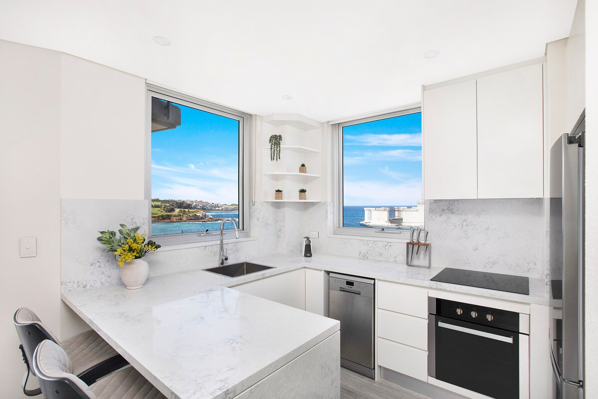 Welcome to the most post-able studio in Bondi, where every detail is designed to impress. This newly renovated, designer studio may be compact, but its genius layout maximizes comfort and style. From the moment you step in, you'll be captivated by the sweeping views over Bondi Beach, perfectly framed by the banquette and dining table by the window—your own private lookout. This is more than just a place to stay; it’s a retreat where the views and the space itself are equally photo-worthy.