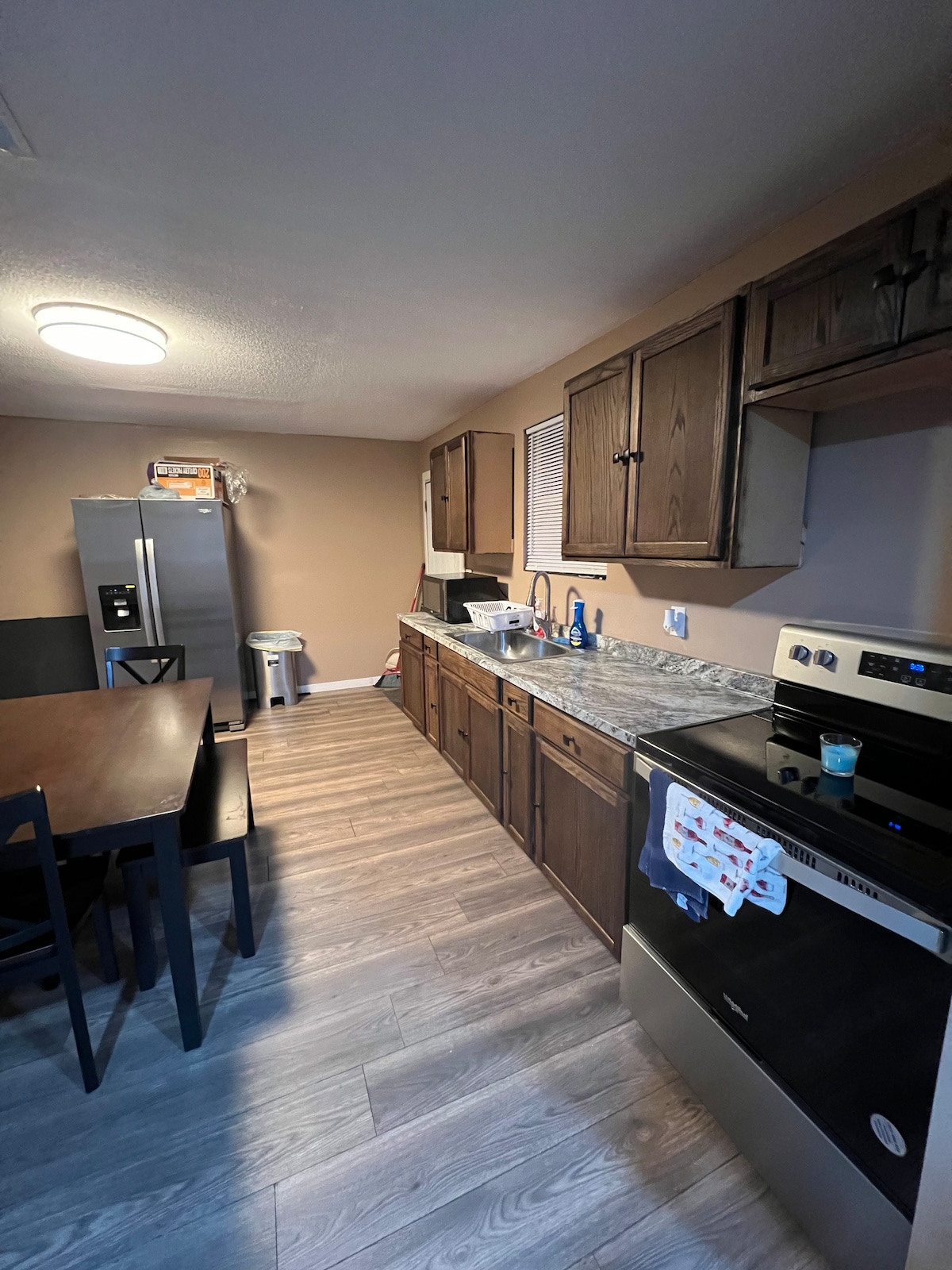Cozy 1 Bedroom fully furnished apartment with own entrance that is in the basement of our beautiful Historic Home in Bluefield West Virginia. We live upstairs. Quiet, respectful guests only. Amenities include wifi, washer/dryer, fully stocked kitchen, snacks, drinks, coffee and tea provided Large dining area and spacious kitchen. Queen size pillow top bed with 1200 thread count sheets. Large L shaped sectional and big screen tv. With electric fireplace on those chilly nights.