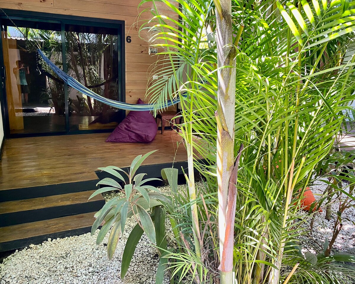 Zasebno prenočišče z dvema enojnima posteljama, klimatsko napravo in zasebno kopalnico s toplo vodo. Majhna zasebna terasa z visečo mrežo.