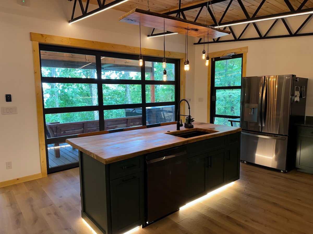 Sprostite se v naši čudoviti koči v Hot Springsu v Severni Karolini, obdani z naravo in domačimi živalmi. Kmetija Panther Branch se razprostira na 30 hektarjih gora, potokov, slapov in pohodniških poti. Na naši majhni kmetiji imamo piščance, čebele, koze in alpake, ki se radi hranijo ročno. Prvotno je bila delavnica kmetijskega poslopja, koča pa je bila razširjena v mirno zatočišče, zgrajeno z lokalnim lesom. Sprostite se v našem zunanjem spa centru s savno in spomladansko kopeljo ali pa se preprosto sprostite in uživajte v spokojnosti narodnega gozda.