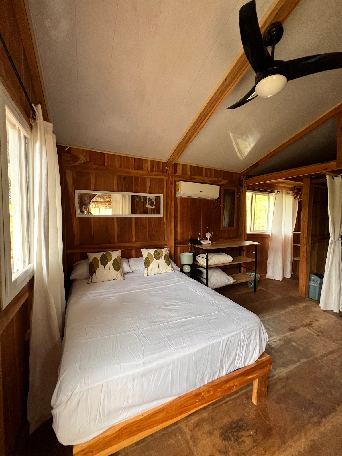 Okusno opremljen studio (25 m2) s Queensize-posteljo, kuhinjsko nišo, sodobno kopalnico in zasebno palubo (6 m2), klimatsko napravo in ventilatorjem. Zasebno senčno parkirišče v bližini hiše. Cabaña je zgrajena v hribu = stopnice navzgor od parkirišča in do bazena in ponuja pogled na morje s spektakularnimi sončnimi zahodi. Velik, 13 m dolg krog bazen. 3 čudovite plaže so v bližini enostavne hoje, od katerih je Playa Morrillo, vrhunec za vsakega strastnega deskarja. V okolici je še veliko aktivnosti na prostem.