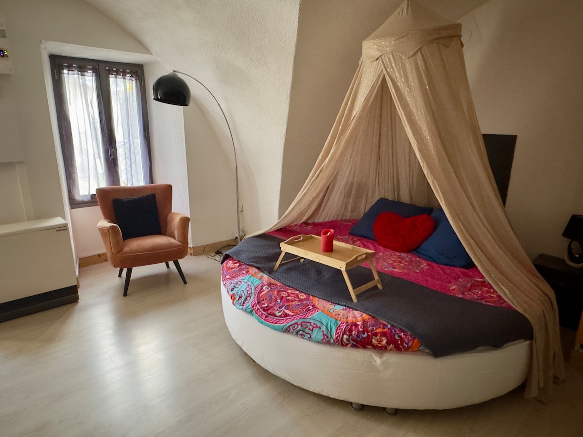 Vous cherchez un endroit où vous détendre ? Ce lieu vous offre tous ce dont vous avez besoin pour passer de bon moment en couple, en famille ou même avec vos amis. Un lit queen size + un canapé convertible. Profitez d'un moment de détente dans la balnéo deux personnes, dégustez les confiseries de notre candy bar (inclus) ou profitez de notre vidéo projecteur qui vous fera vivre des soirées comme au cinéma sans sortir du lit.