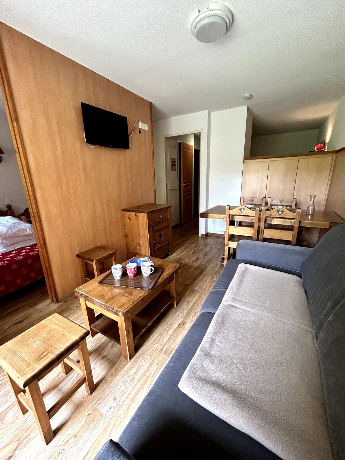 Smučanje, pohodništvo ali preprosto sprostitev z družino, uživajte v tem vrtnem vzdušju, ki se nahaja na idealni lokaciji. Neoviran pogled na gore, nekaj metrov od smučišča, zelo blizu Col d 'Allosa in Mercantoura, lahko ta čudovita garsonjera v velikosti 25 m2 udobno sprejme 4 osebe. Idealno opremljeno in lepo urejeno stanovanje je zelo blizu vseh trgovin, v mirnem in sproščujočem okolju. Odlično za odlične počitnice!