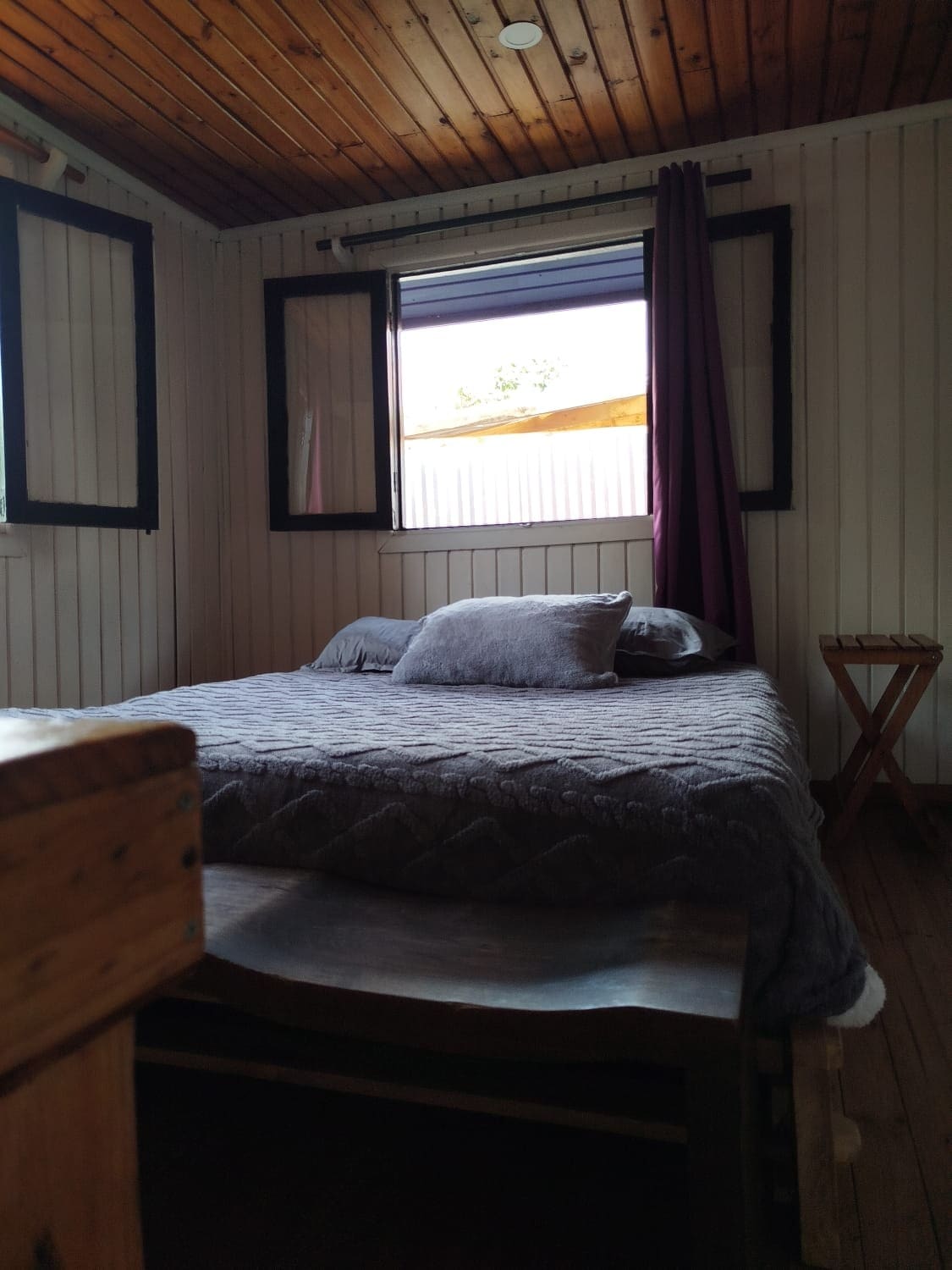 Hermosa cabaña en La Patagua, ideal para descansar en familia o con amigos. Está a 4km del centro de Marchigüe, en la Ruta del Vino🍷 , cercana a viñas 🍇 y a la playa 🌊 Se ubica aislada en un sitio cerrado de 5000m², en la ladera de un cerro con árboles nativos 🪴, vistas panorámicas y total tranquilidad. De 50m², 2 dormitorios (camas de 2 plazas), 1 baño completo y un espacio abierto con cocina, comedor y living. Equipada con TV, cocina, horno y refri grande. ¡Tu mascota es bienvenida! 🐶