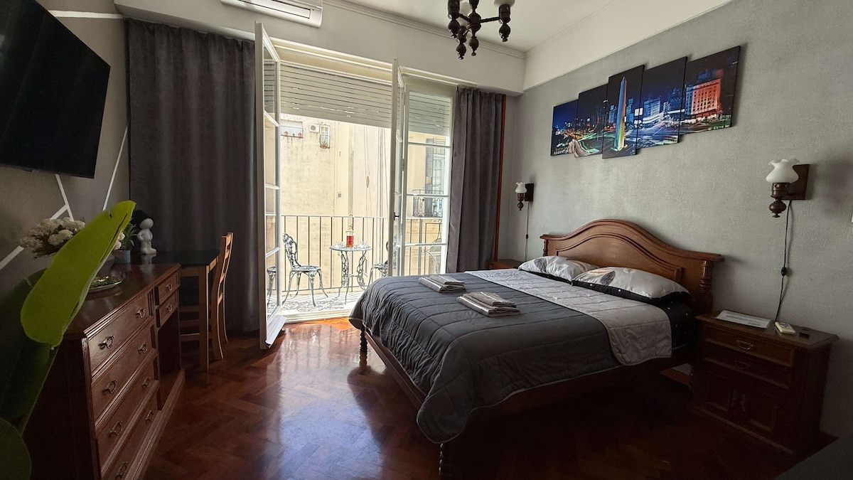 Este comodo y luminoso departamento en el corazon de palermo ofrece un dormitorio con cama doble, un living comedor con sillón cama y TV, y un amplio balcón corrido con una hermosa vista que conecta ambos ambientes. La cocina está totalmente equipada con horno, microondas,utensilios y lavarropas. Ubicado a pocas cuadras de Plaza Italia y Plaza Serrano, en pleno Palermo, rodeado de bares, restaurantes, tiendas y transporte público. Un lugar ideal para disfrutar de la vida porteña.