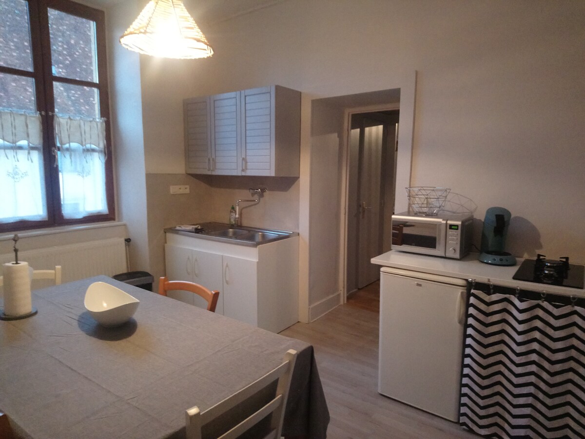 Dobrodošli v tej očarljivi, popolnoma prenovljeni garsonjeri. Odlično za bivanje sami ali za dva, za turistični postanek ali poslovno potovanje. - Svetlo in s pogledom na mirno notranje dvorišče ter v bližini vse opreme. - V celoti opremljena in opremljena: sodobna kuhinja, jedilnica, shramba, Wi-Fi. Vse je zasnovano tako, da se boste počutili kot doma. - Samostojni vstop zaradi škatle za ključe. 20 minut od Bourg-en-Bresseja 7 minut od Saint-Amourja