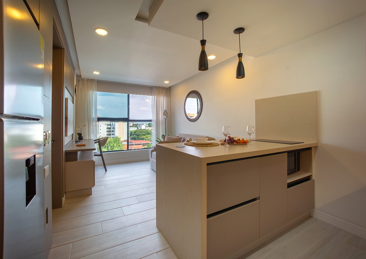 New Apartaestudio La Flora - Norte Cali, quiet sector, prominent city area. Gastronomska, turistična, poslovna območja in nakupovalna središča, kot so Chipichape, zelene površine - Parque La Flora. Letališče v bližini. Stanovanje (31 M2) - Hladilnik - Pralni in sušilni stroj - Kuhinja - Aparat za kavo Mikrovalovna pečica - klimatska naprava, - Smart TV - Dvojna postelja - Raztegljiv kavč -PC pisalna miza/stol - Barska miza za zajtrk in 2 stola - Miza za kavo -Internet Wi-Fi 200 megabajtov - Kabelska televizija - Netflix -Amazon Prime