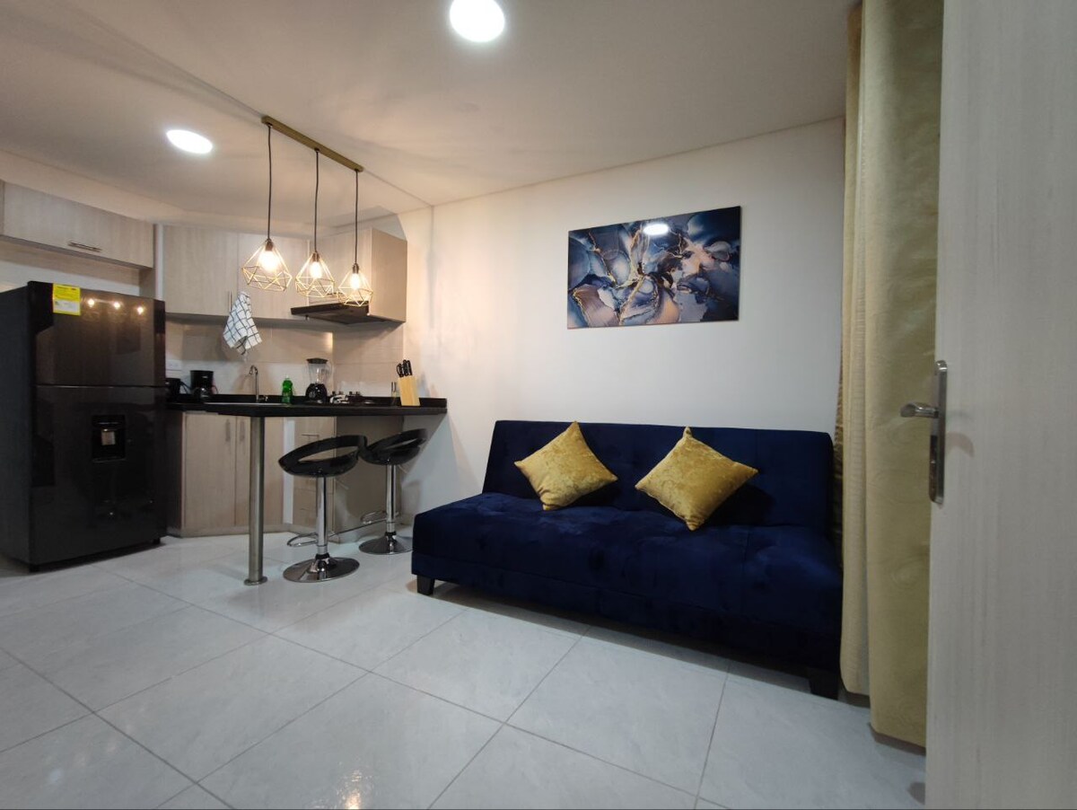 To popolnoma novo in razkošno stanovanje z 1 spalnico je odlično za edinstven in miren oddih, delovno noč ali daljše bivanje v našem mestu. Nahaja se v soseski Prados del Norte, mirnem in zračnem kraju v bližini turističnih znamenitosti v Caliju, nekaj minut od letališča in transportnega terminala. To stanovanje vam ponuja vse, kar potrebujete za vaše udobje, z odlično lokacijo pa lahko dosežete zanimive kraje, kot so restavracije, bari, nočni klubi, supermarketi, lekarne in še veliko več.