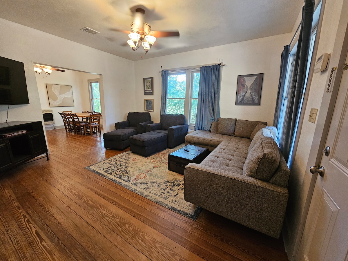 Pozdravljeni! Dobrodošli v udobnem prenočišču Howdy Home v očarljivi zgodovinski četrti v Bryan, ki je le 10 minut hoje od restavracij, glasbe in trgovin v središču mesta. Idealno za obiske Texas A&M, First Friday ali Santa's Wonderland (Kyle Field in Olsen Field sta oddaljena le 6 milj). Uživajte v enostavnem samostojnem vstopu/odhodu, popolnoma založeni kuhinji in zasebnem dvorišču z ognjiščem in igro »cornhole«. Sprostite se ob 65-palčnem televizorju in sistemu Sonos. 7 spalnih mest: 1 zakonska postelja King, 1 zakonska postelja Queen, 2 ločeni postelji. Rezervirajte sproščujoč oddih v Bryan!