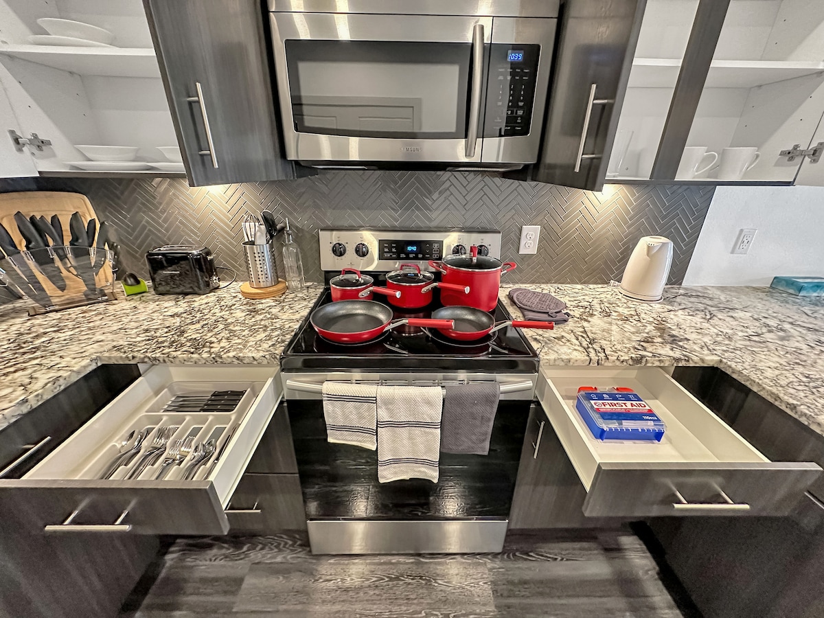 Sodobno, prostorno prenočišče z vso opremo, ki jo potrebujete za razkošno bivanje! Prenočišče je oddaljeno od več priljubljenih restavracij, barov in trgovin, pisarn in 5 minut vožnje od trendovske Legacy West ter 3 milje od svetovnega sedeža Dallas Cowboys. Enostaven dostop do avtocest in polnilnikov za električna vozila. Čiščenje je na voljo z doplačilom za daljša bivanja.