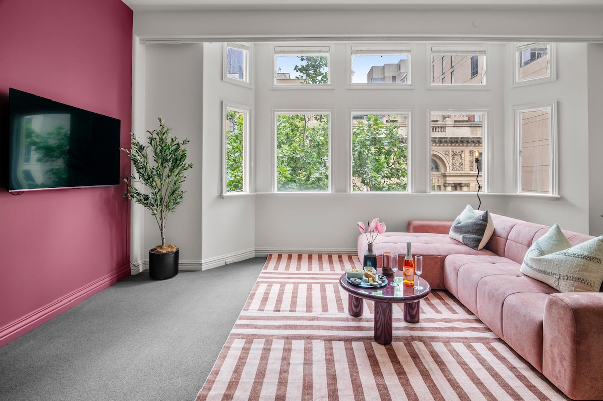 Kot je priporočeno v Gourmet Traveller, Urban List in Broadsheet. Uživajte v sproščeni eleganci tega božanskega oddiha z osupljivim razgledom v legendarni stavbi Majorka. Preden se odpravite na slavne uličice v Melbournu, si privoščite najboljše kavarne, restavracije in bare, ki jih ponuja mesto. Vse je enostavno peš. Odkrijte svojo dušo iz jazzovske dobe, medtem ko doživljate mesto skozi to lepoto, rojeno iz tiste intenzivno ustvarjalne in veselo osvobajajoče dobe.
