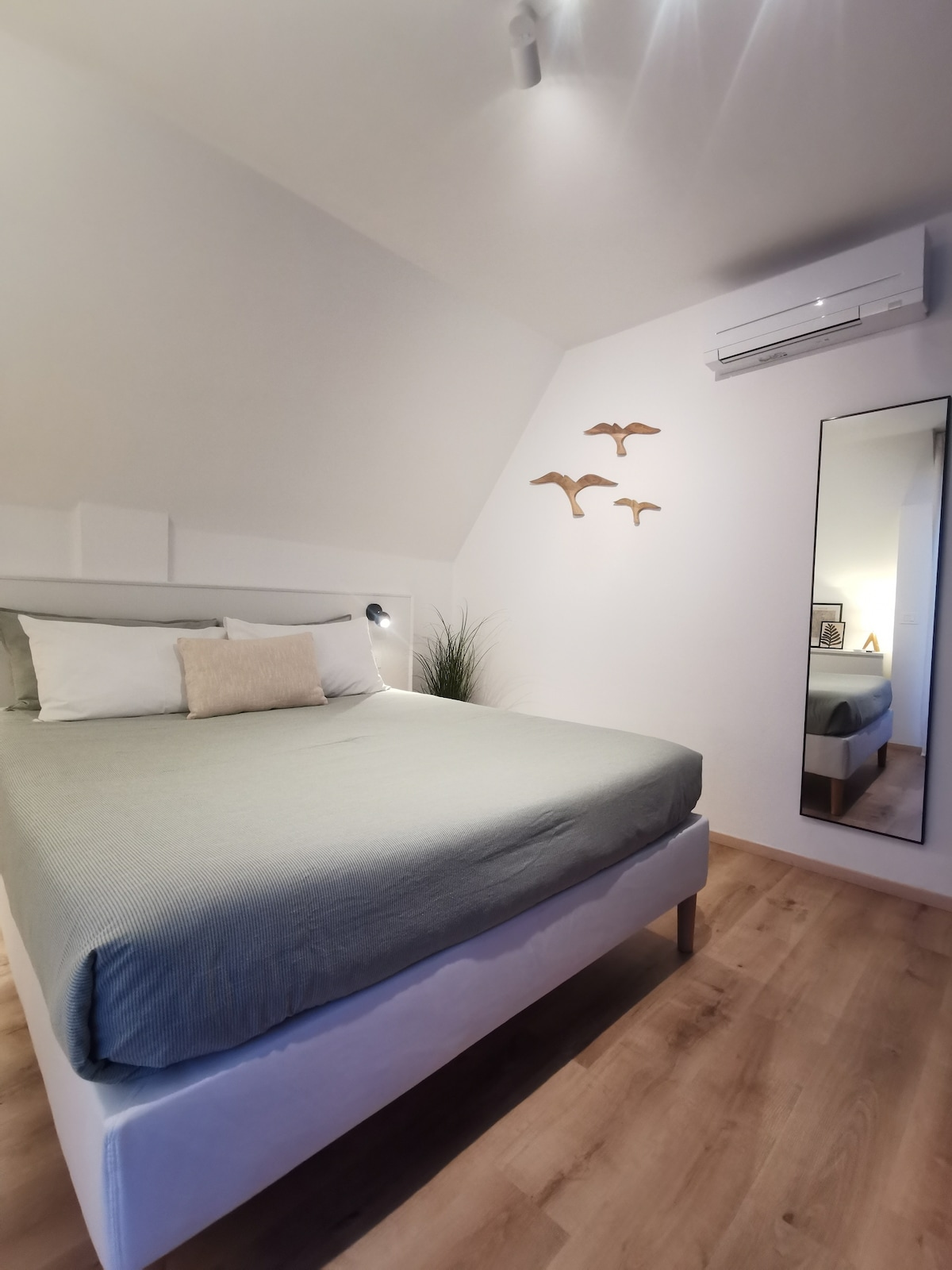 Na novo zgrajena hiša se nahaja v mirni soseski, plaže pa so zlahka dostopne. Stanovanje ima klimatsko napravo, popolnoma opremljeno kuhinjo in dnevno sobo, veliko teraso, kopalnico in spalnico z balkonom. Stanovanje je primerno za 2 osebi, vendar obstaja možnost uporabe raztegljivega kavča za dodatnega gosta. Hiša ima pokrito skupno parkirno mesto. Dodatno zunanje parkirno mesto 50 m od hiše.