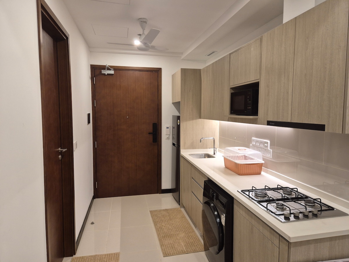 To centralno locirano pametno stanovanje z 1 spalnico, idealno za družine, pare in poslovne potnike, ponuja udobno in priročno bivanje v Colombu. Stanovanje se nahaja na priročni lokaciji v bližini trgovin, restavracij in ključnih mestnih znamenitosti. Ponuja popolnoma opremljeno kuhinjo, pralni stroj, vgrajen visokohitrostni Wi-Fi in pametno televizijo. Stanovalci imajo dostop tudi do vrhunskih skupnih oprem, vključno s telovadnico, tekaško stezo, bazeni, kinodvorano, parkiriščem in igriščem za badminton.