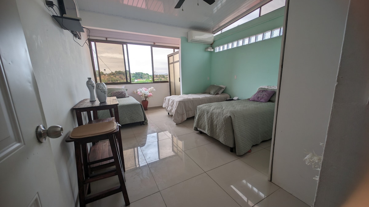 Sprostite se z vso družino ali prijatelji v tem mirnem kraju v Panama Cityju, le 10 minut od letališča Tocumen, v bližini glavnih vias, zlahka in hitro se lahko odpravite s podzemno železnico, avtobusom ali taksijem, da obiščete Panama City, v bližini nakupovalnega središča MetroMall in Los Pueblos. Zelo kul stanovanje... prepričani smo, da vam bo vetrič v tem bivališču všeč.