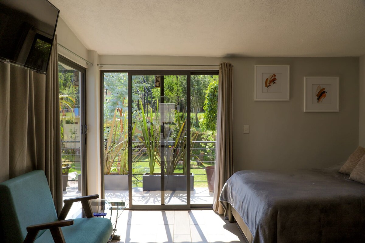 Novo stanovanje v treh nadstropjih s čudovitim razgledom na čudovit mehiško-inaluzijski vrt. Dve veliki postelji, dve kopalnici, opremljena kuhinja, jedilnica in udobna dnevna soba. Zelo tiho in tiho, ker je zaščiteno s štirimi bujnimi drevesi na vrtu. Soseska Santa María se je postavila v okus mladih, na voljo je širok gastronomski razpon in je kolonija ob zgodovinskem središču, 10 minut hoje od podzemne železnice San Cosme, 4 postaje pa vodijo do Zócala.