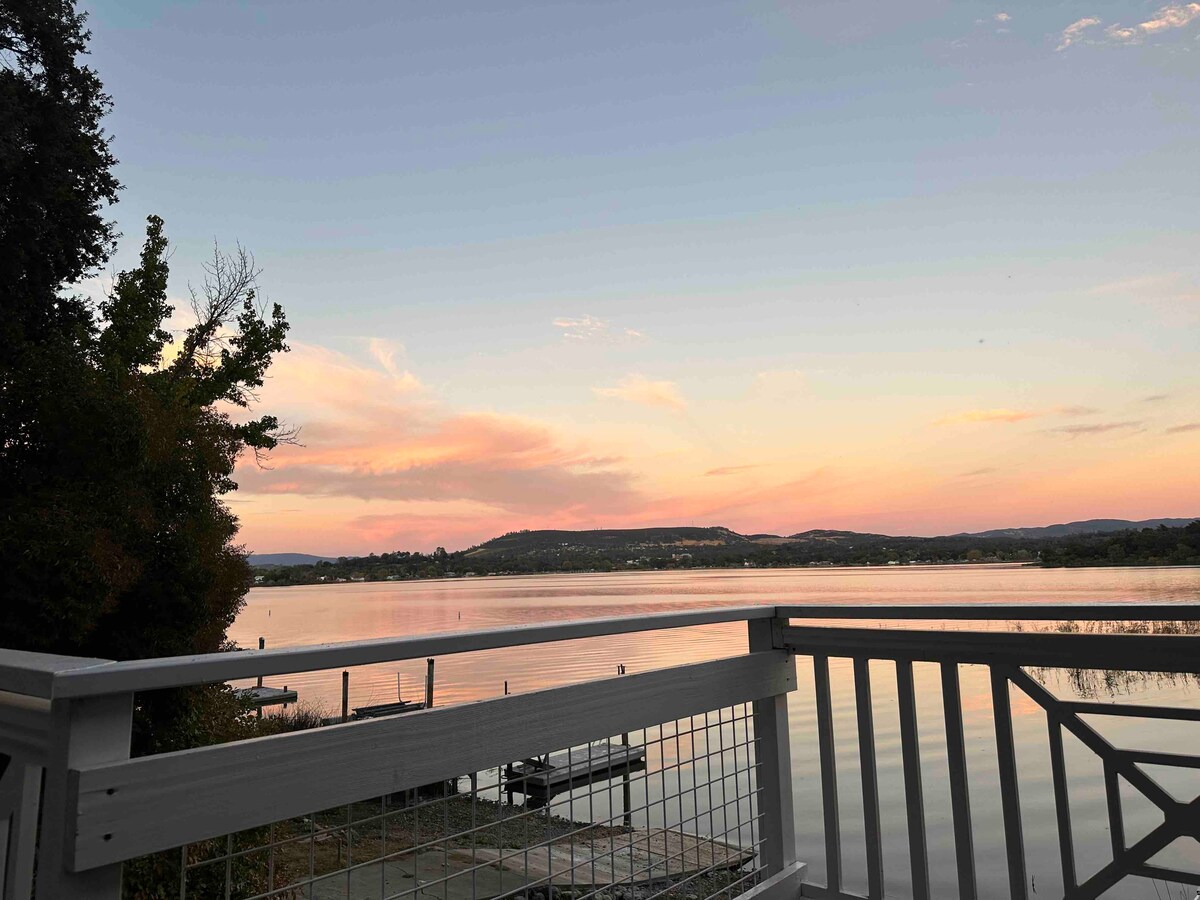 Ta čist, udoben mali oddih se nahaja na hribu s pogledom na jezero. Ponaša se s panoramskim razgledom iz skoraj vsake sobe v hiši. Če ponoči odprete okna, boste morda slišali valove. To bi bila odlična domača baza za pustolovščine, ribolov, čolnarjenje, pohodništvo, winetasting itd. Potujte manj kot minuto vožnje z avtomobilom (5 peš) in našli boste park, javno plažo in brezplačno izstrelitev čolna. Lahko pa ostanete doma in na žaru na terasi. Restavracije, kava in nakupovanje v neposredni bližini peš.