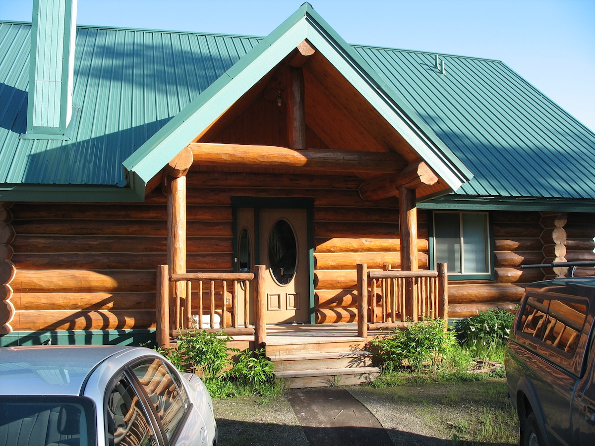 This cozy 640 sq. ft red log cabin is tucked up in the woods. The bedroom has queen bed. A 200 sq. ft loft has a queen and 2 twins, accessed by ladder (see pic). Full kitchen & BBQ (electric). 3/4 bath (shower). 32" Flat screen, Blu-ray, stereo. Romantic gas fireplace. Limited WiFi & cell coverage, come unwind, relax & recharge. Covered deck offers excellent wildlife observation. Owners have large people-friendly dogs, so no pets allowed. In winter, 4WD vehicle or chains strongly advised.