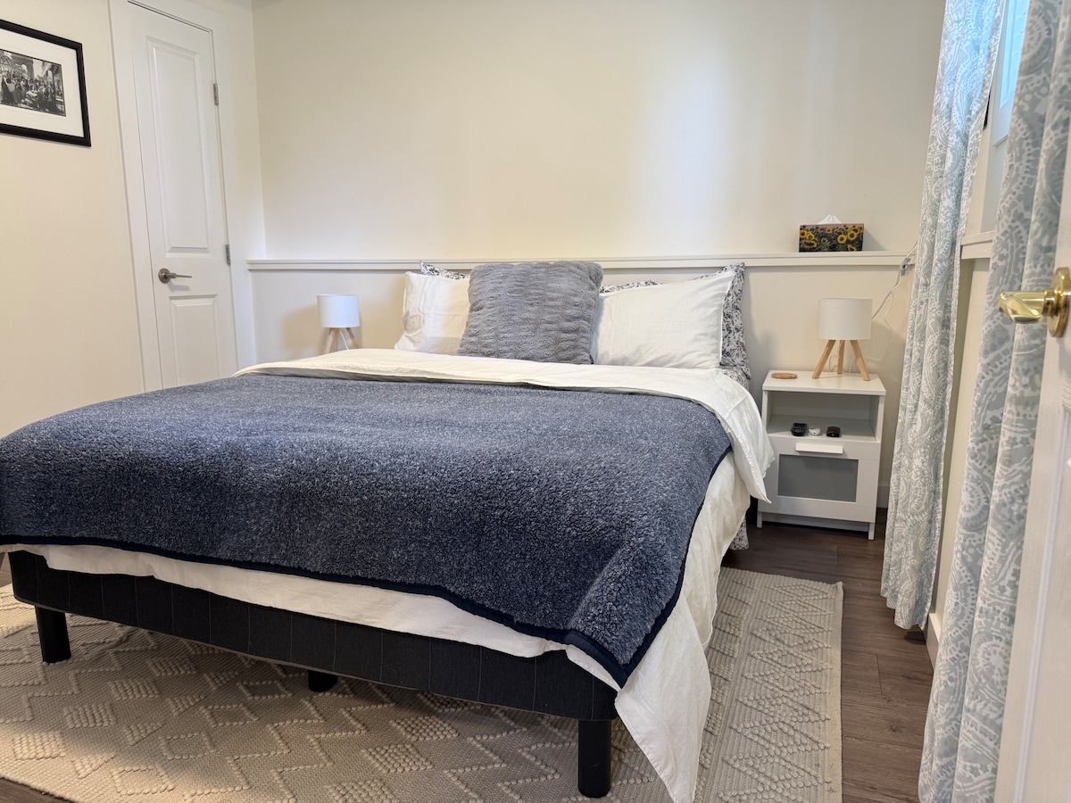 Dobrodošli v našem udobnem pritličnem garsonjeri v slepi soseski! Naš prostor je kot nalašč za dva, ima zasebni vhod, zelo udobno zakonsko posteljo z usnjenim vzglavjem, 4k UHD 55-palčni televizor z Netflixom, zasebno kopalnico, stranišče z bidejem, aparatom za kavo, grelnikom vode in jedilno mizo, ki služi kot delovna postaja. Uživajte v brezplačnem Wi-Fi-ju in centralnem ogrevanju/hlajenju. Na voljo je brezplačno parkiranje na dovozu za 1 avtomobil. Rezervirajte svoje bivanje še danes in izkusite popolno mešanico udobja, priročnosti in zasebnosti.