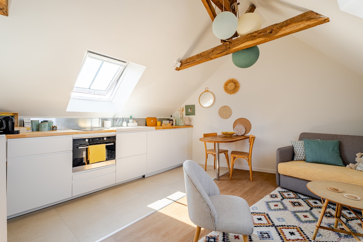 Veliko in svetlo stanovanje velikosti 42 m², pod streho, v mirni ulici v središču St-Servana. Idealna lokacija, »blizu vsega«, med morjem (200 m od plaž), trgovinami in restavracijami (100 m od centra) ter 500 m od centra mesta. V celoti prenovljeno v začetku leta 2021. Mezanin s posteljo 160 oseb. Popolnoma opremljena kuhinja. Neodvisna kopalnica (prha). Ima vse objekte in udobje za nepozabno bivanje v deželi Malouin. Enostavno in brezplačno parkiranje.