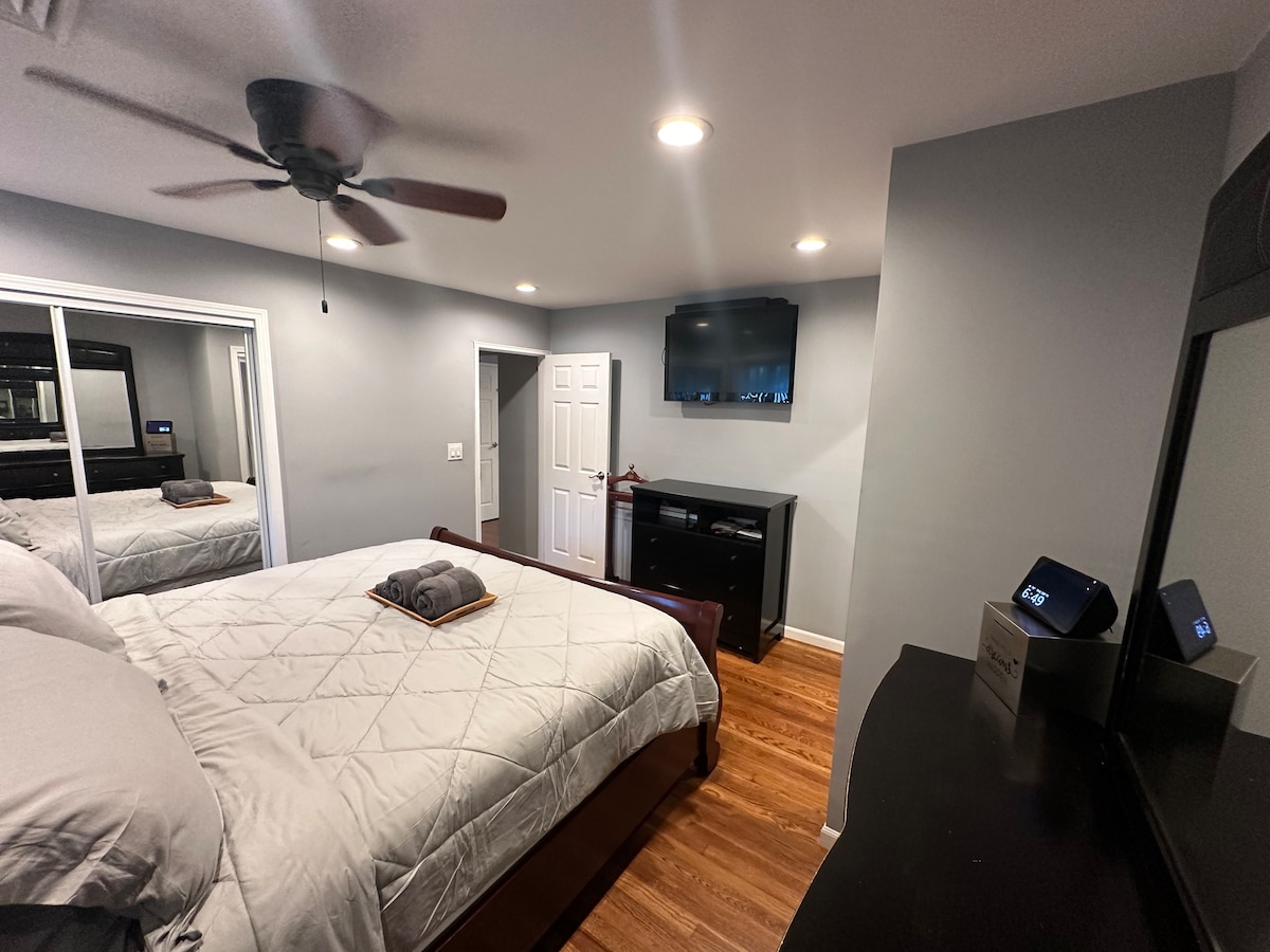 Pridružite se nam v našem na novo urejenem, razkuženem in zelo čistem najemu. Uživajte v celotnem 2. nadstropju našega prenočišča z vhodom v osrčje čudovitega East Northporta. Ta najem ima zasebno kopalnico in zasebno dnevno sobo s televizijo, hladilnikom in mikrovalovno pečico. Naš dom je zelo blizu peš do vlaka in restavracij. Samo kratka vožnja ali vožnja s kolesom do plaž, gledališča, pohodništva, kajakaštva, igrišča za golf, pivovarn in vinskih kleti. Samo pametni Wi-Fi TV.