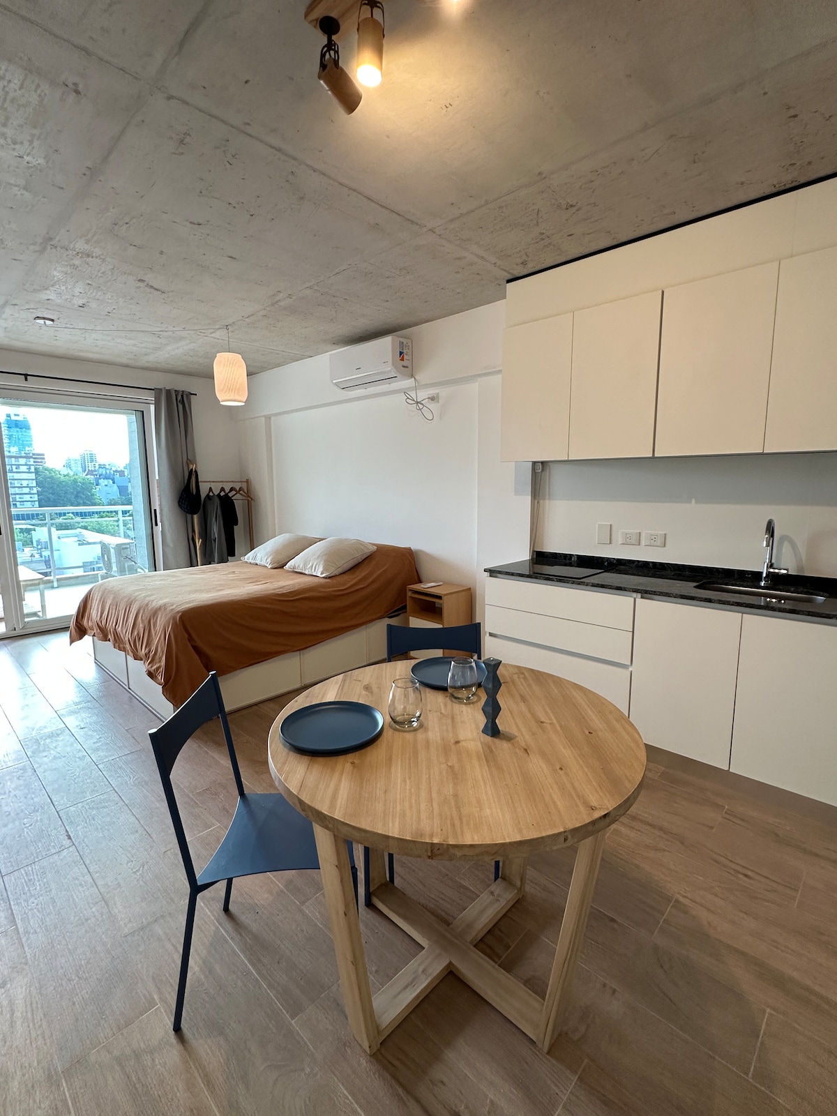 Moderno dos ambientes, confortable y luminoso